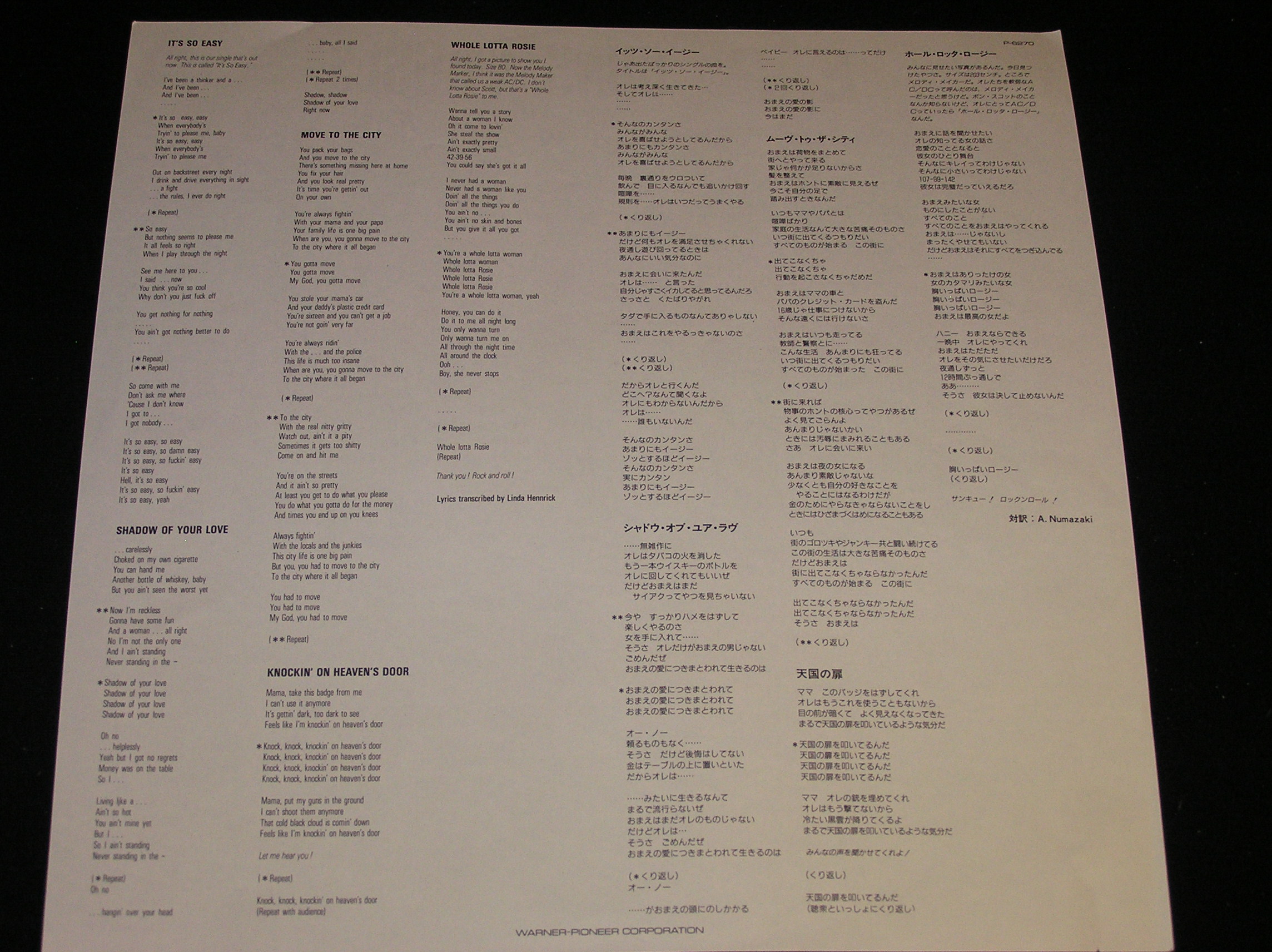 Fun fact: back of sleeve and the lyric sheet lists